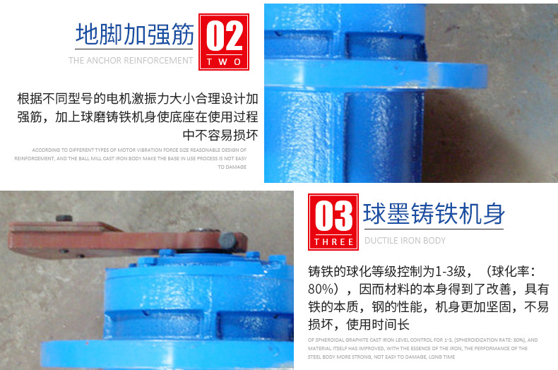 6、振泰立式振动电机选用特制耐震轴承,可靠性高,动力抢进。
