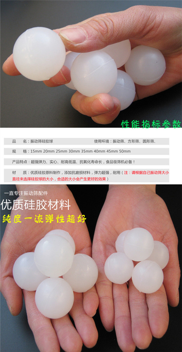 振动筛弹跳球是振动筛不可缺少的部分,它是在振动筛工作的时候受冲孔板的作用力不停地上下跳动,往复地敲击筛网,从而实现清理筛网提高透网率的目的。