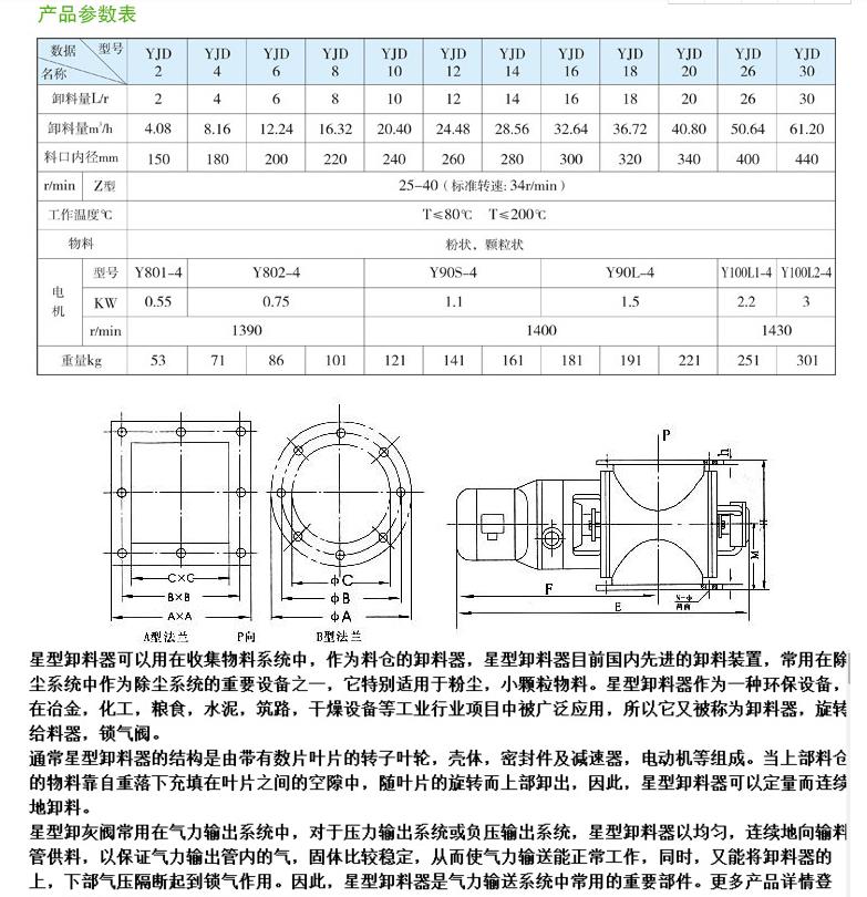 星型卸料器又称:卸灰阀、下料器、旋转给料机 钢性叶轮给料机 分格轮 卸料器还叫电动排出机 出灰阀 星型排出机。