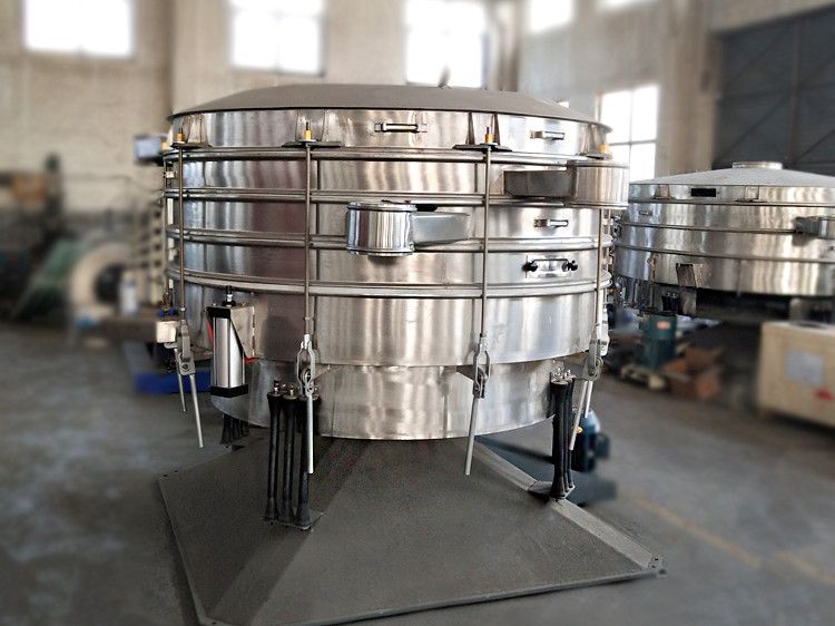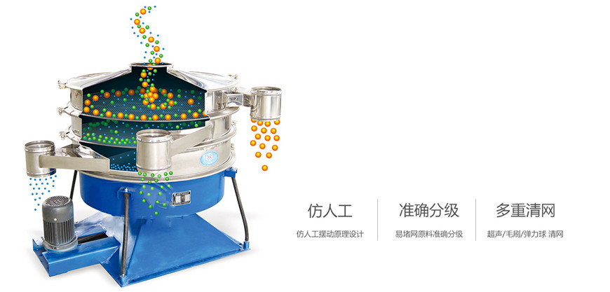 摇摆筛是一种仿人工摇动的低频旋振筛,其原理是:瞬时运动为沿径向的位移和以此位移为轴的圆周运动的合成(螺旋运动),即可调节偏心距的激振器产生了非线性三维运动,物料也产生同样的近似手动作业的运动,从而达到筛分之目的,再配合筛分附件可获得更加理想的筛分效果,适合于圆形状、圆柱状、片状、乃至 于规则形状易堵网且需要精细筛分的物料,是为了满足大产量、高密度筛分用户而设计的一种筛分设备,与一般圆形筛相比,它的筛分精度、效率、产量、筛网寿命能提高5-10倍,符合所有精细与超细范围的粉末与微粒状物料,特别适合难以处理的物料。还可单层或多层筛分,一次可筛分至6个粒度。