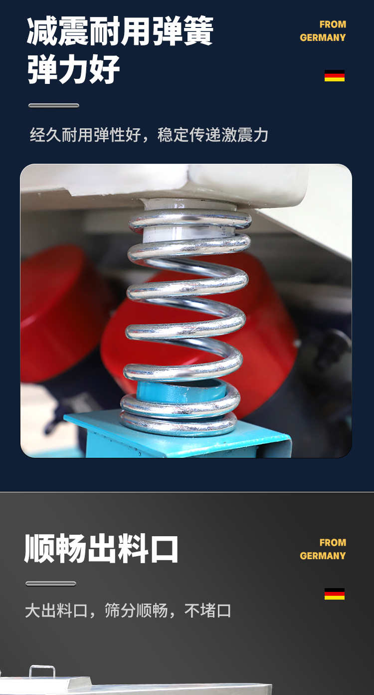 直线振动筛采用双振动电机驱动,当两台振动电机做同步、反缶旋转时,其偏心块所产生的激振力在平行于电机轴线的方向相互抵消,在垂直于电机轴的方向叠为一合力,因此振动筛的运动轨迹为一直线。其两电机轴相对筛面有一倾角,在激振力和物料自重力的合力作用下,物料在筛面上被抛起跳跃式向前作直线运动,从而达到对物料进行筛选和分级的目的。可用于流水线中实现自动化作业。具有能耗低、效率高、结构简单、易维修、全封闭结构无粉尘溢散的特点。筛分目数325目,可筛分出7种不同粒度的物料。