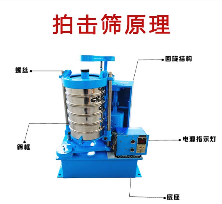 拍击式标准振筛机主要由机座、筛与传动机构等部分组成。可配备专用夹具、即可装夹Φ200试验筛,又可装Φ75、Φ100套筛,装夹方便灵活,夹紧牢靠,拍击式标准振动筛可筛分多种特性的产品。适用于普通磨料粒度组成检查和超硬材料生产分级及粒度组成检查,亦广泛用于地质、冶金、粉体、化工、建工水泥、医药、国防等部门科研生产实验室,对物料进行筛分检测。拍击筛作为一种试验筛分设备,优点有很多,以下为您列举5点说明