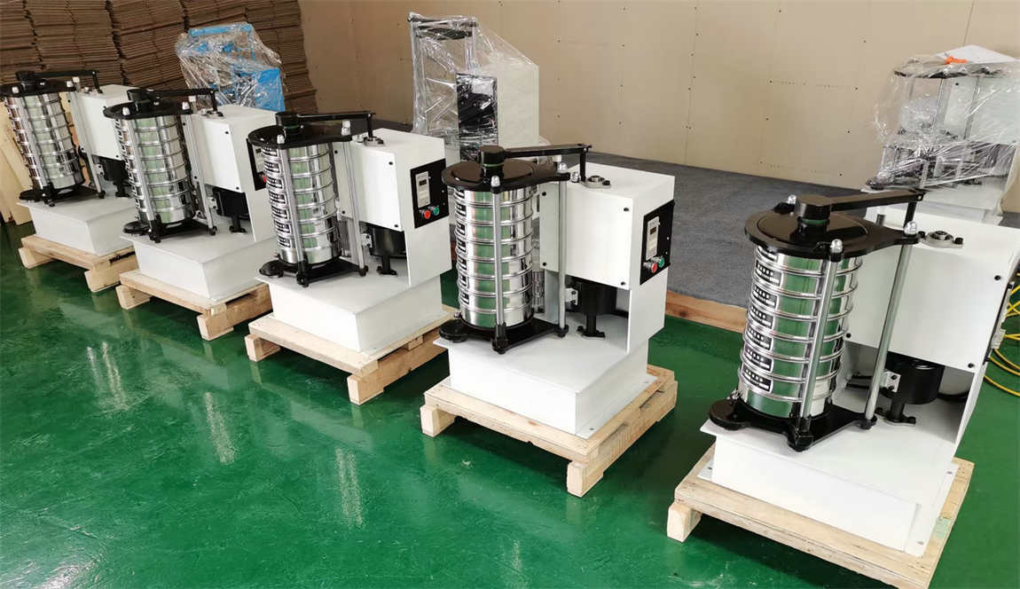 康振公司生产的标准拍击式振动实验筛机(同步带式),工作参数符合国家标准、配合试验筛、分样筛使用可对冶金、化工、磨料、超硬材料、饲料、食品、医药等行业的粉体材料进行筛分生产、检验。