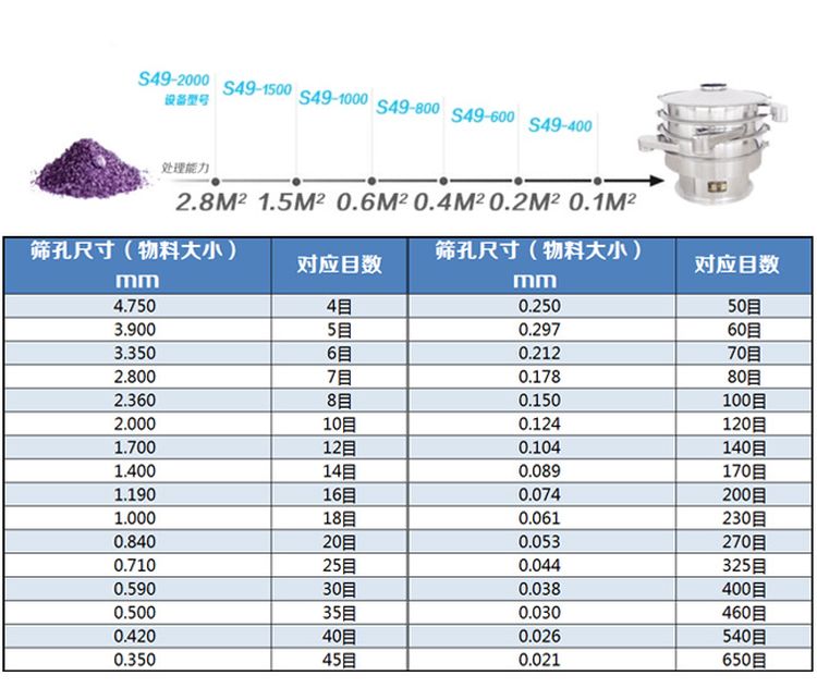 物料筛分范围: