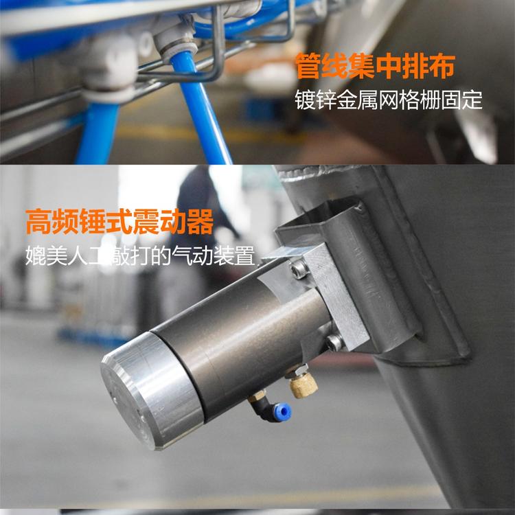 破拱方式:可选择以拍打装置促使吨袋内的粉粒状物料下落或采用以对柔软的大袋(吨袋)进行“按摩”的方式促使其物料下落的破拱排料装置。