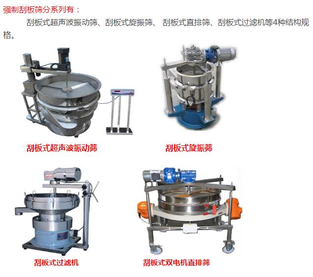 强制式振动筛是康振械有限公司设计的一款新型筛分设备,其主特点在于安装了不锈钢刮板(也可安装毛刷),