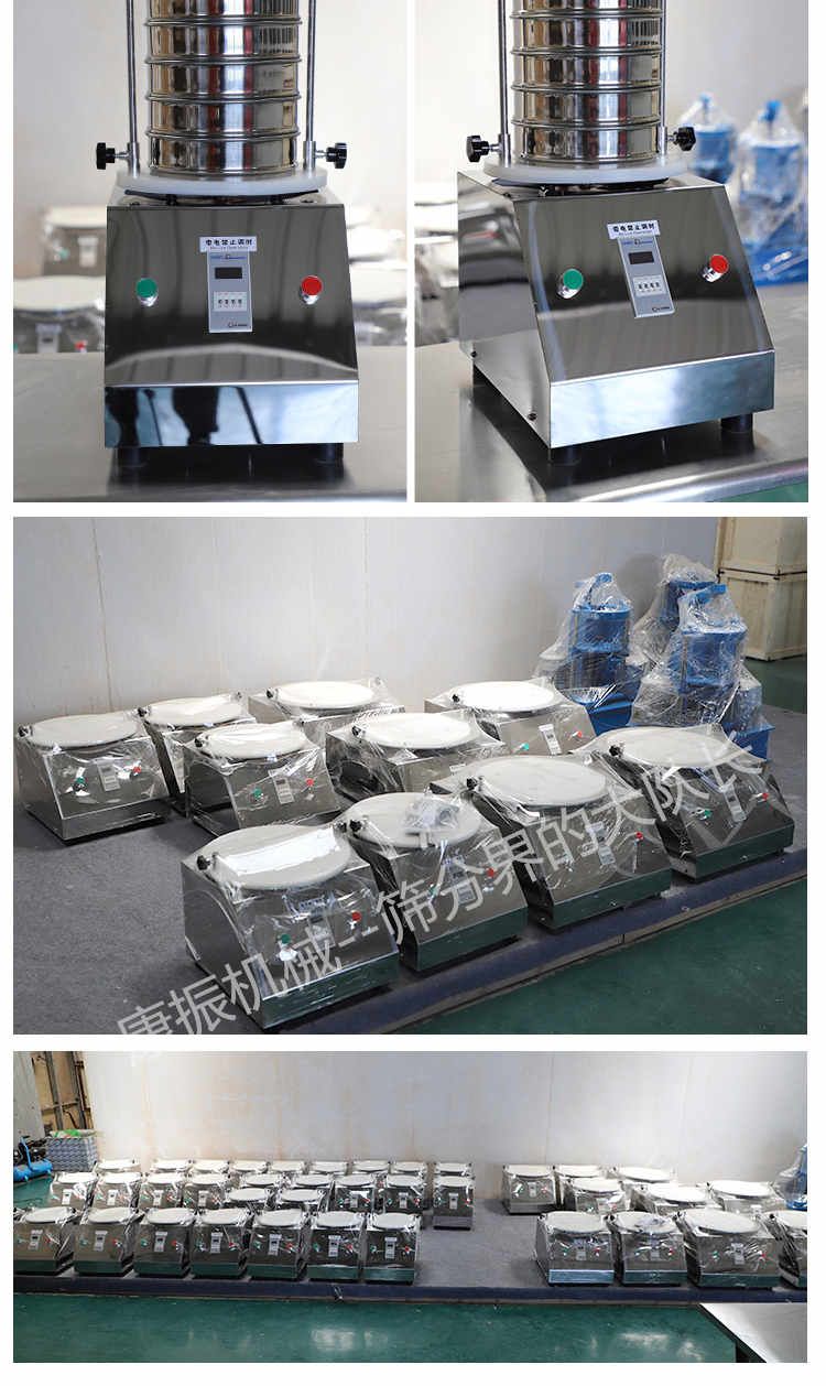 标准检验筛(试验筛)又叫标准筛,是具有标准筛孔的筛析工具,又是检验其他粒度检测方法的工具或依据,实验室筛分所用的筛子是按表中有关标准制成的筛孔大小不一的试验套筛,即标准筛。标准筛是由直径15~450mm,高为25~50mm的筛框和筛网组成。筛框不锈钢板制成,实验室筛分用套筛是一个筛子套在另一个筛子上叠成的。上层的筛孔大,下层的筛孔小。上部加一个盖,下部加一个底盘,以减少灰尘和损失。底盘还用来承接通过后一个筛子的细粒级产品。