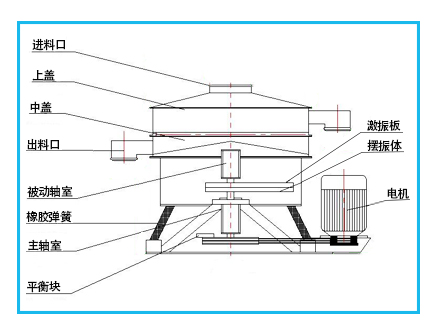 振动电机:是设备的主要动力来源,通过振动电机激振力的作用使物料在筛面上运动。
