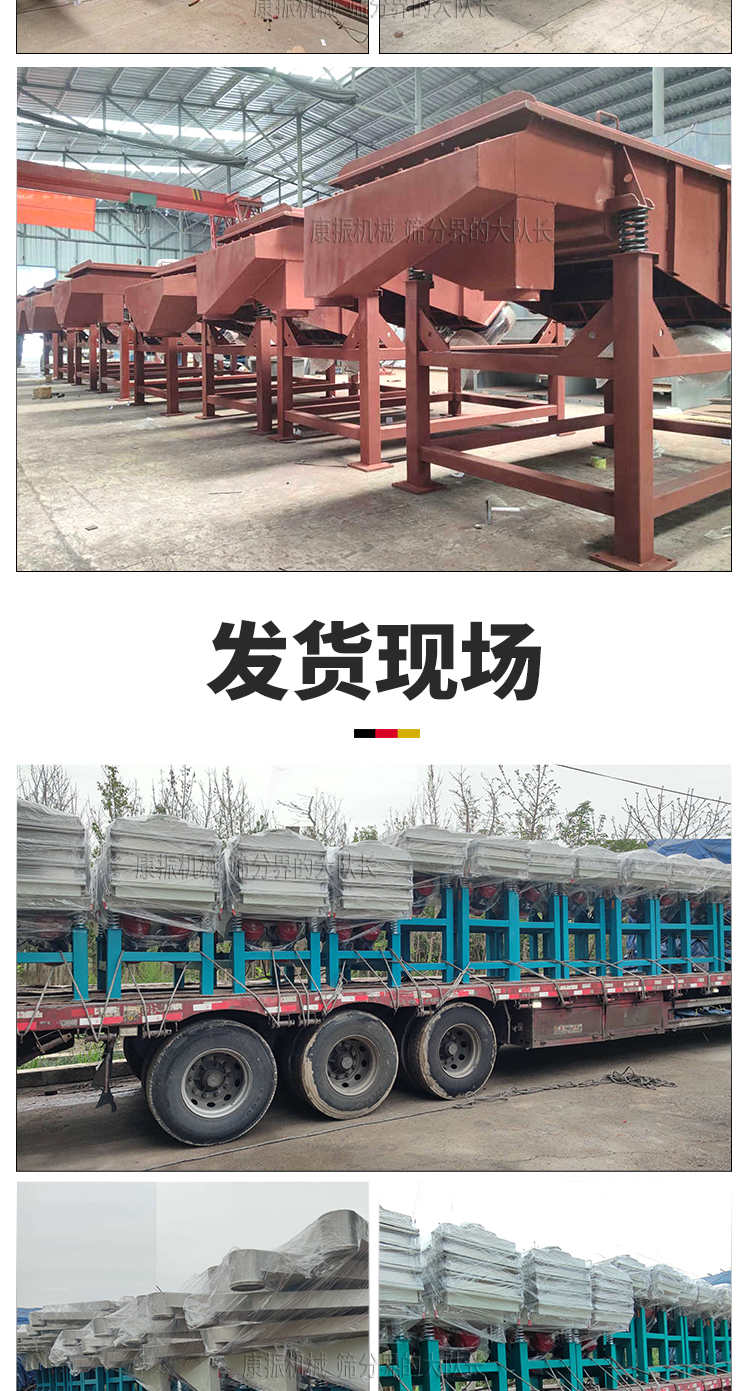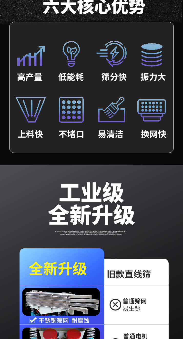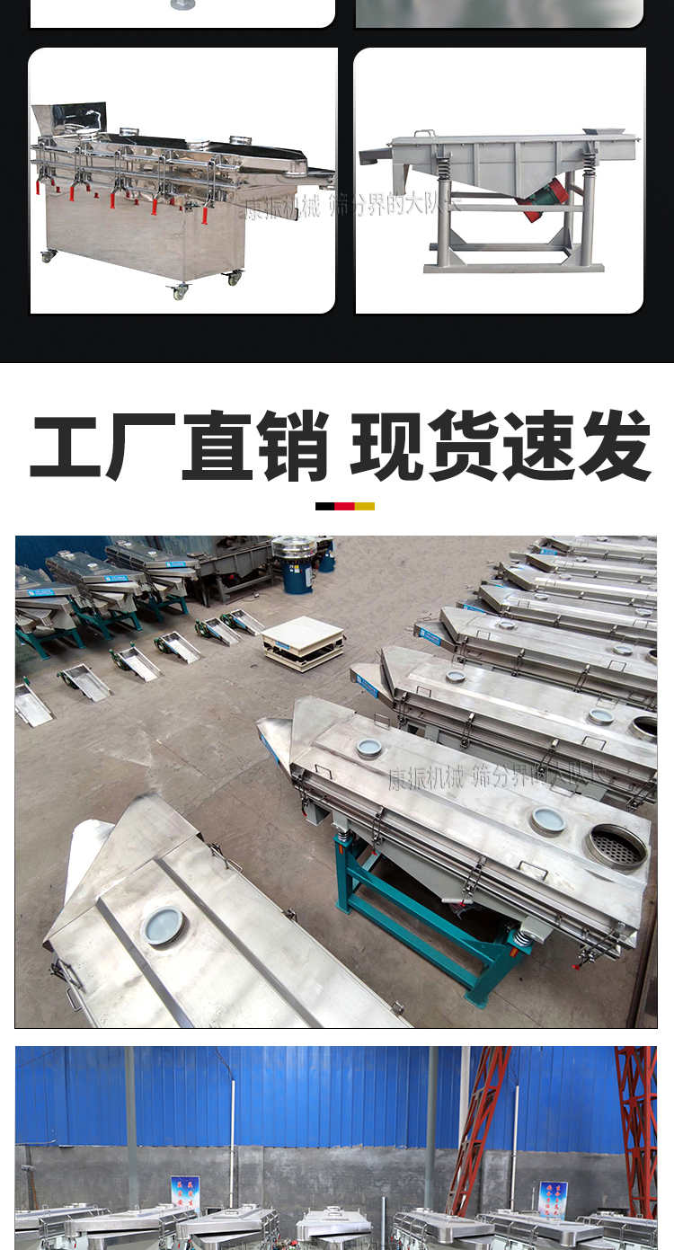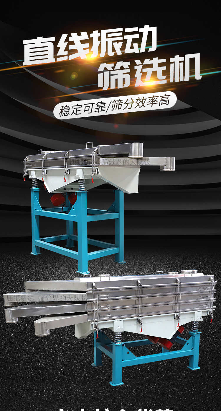 直线振动筛(直线筛)稳定可靠、消耗少、噪音低、寿命长、振型稳、筛分效率高等优点。
