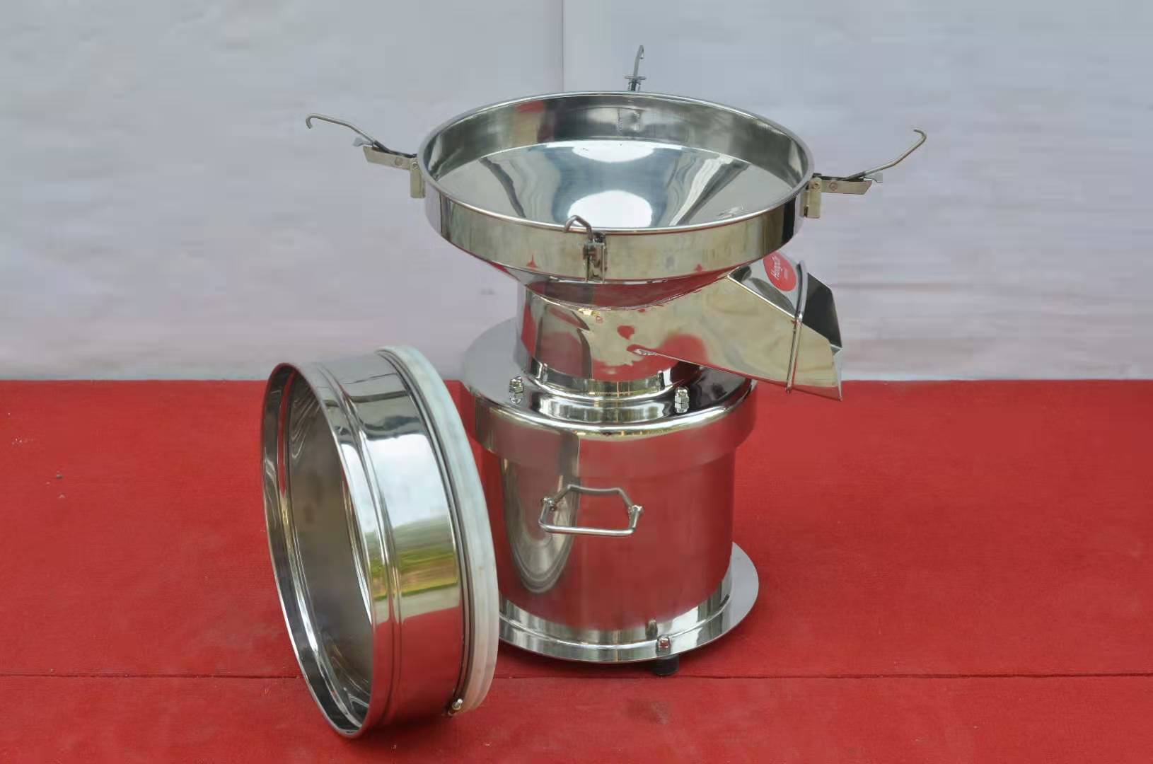 450型超静音筛分过滤机适用于各行业生产厂家单层筛分和过滤用,处理生产量不多或杂杂质少的物料,在食品、医 药、化工、冶金、磨料、陶瓷、涂料、金刚石、矿业等行业应用中。450型过滤筛分机网孔不堵塞,粉末不飞扬。可筛至400目。不锈钢(304)材质,机型小巧,重量轻,可任意移动,不占空间。
