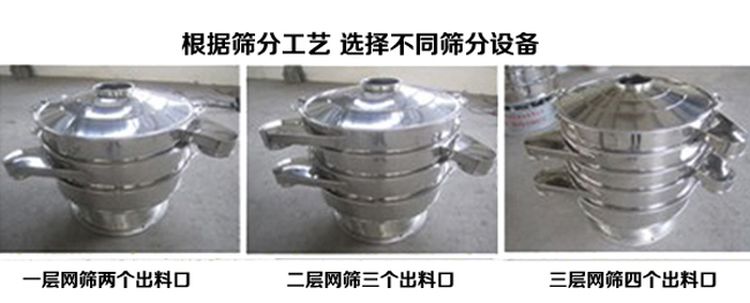 任何颗粒、粉末、粘液一定范围内均可筛选。筛分细至500目或0.028mm, 过滤小可至5微米。分级筛选,可筛一至五层筛网,能同时进行二至六个等级的分选或过滤。