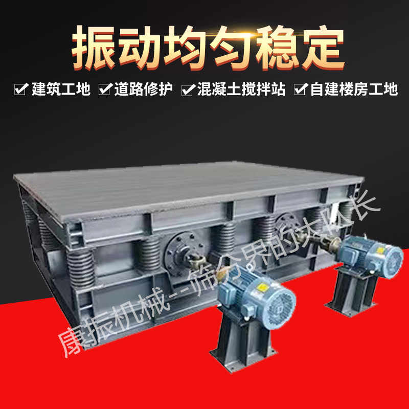 康振矿物铸件振动平台,主要为矿物铸件的振实而研发,原理和结构在德式工艺的基础上,以及客户实际使用中的反馈,做了大量的改进和优化而推出的一款新型振动平台。主要包括机座,平台壳体,安装在壳体内的若干个激振箱,贯穿激振箱的传动轴,激振器,驱动电机,变频控制装置,减震弹簧等。