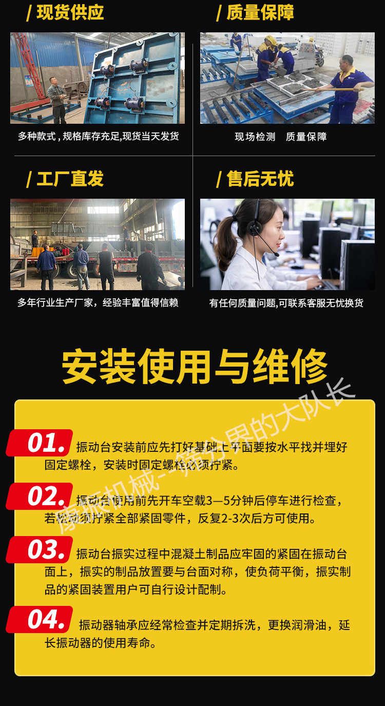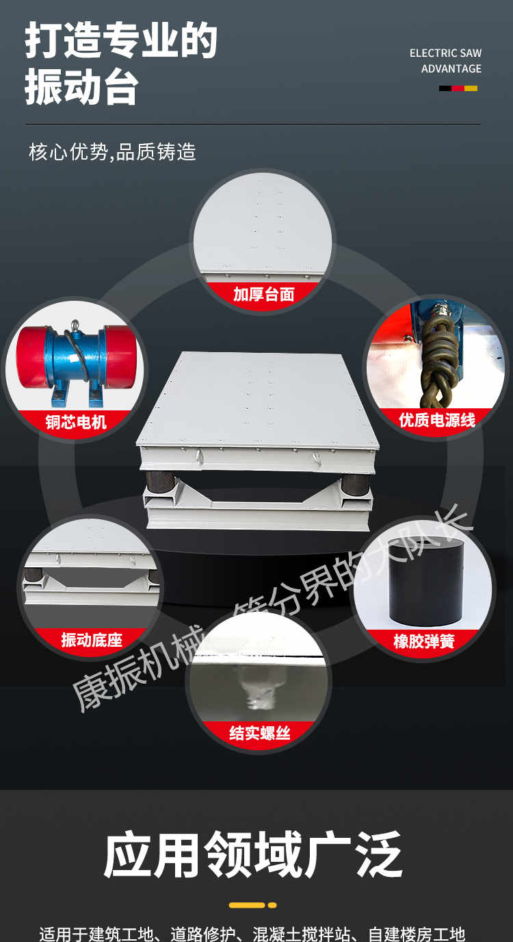 被广泛应用于试验室、现场工地作试件成型和预制构件震实各种板柱、梁等混凝土构件振实成型,并应用在冶金、模具、食物、化工、建材等行业。